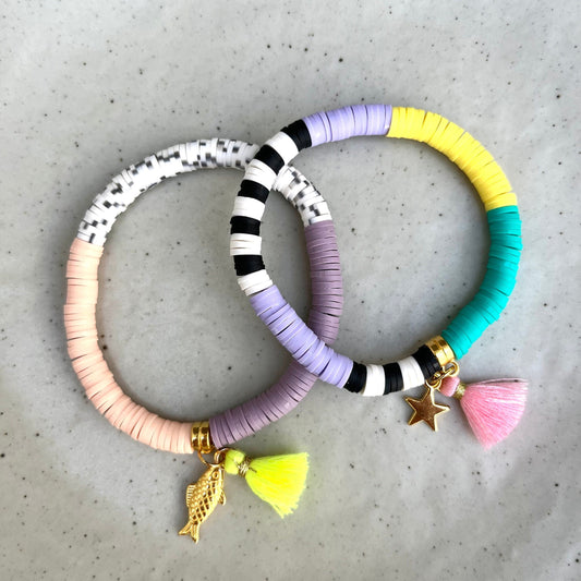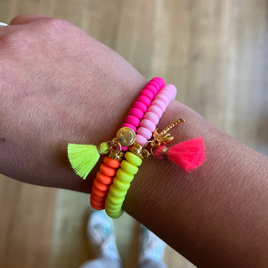 Armband "Neongelb/Rosa", Polymer Perlen